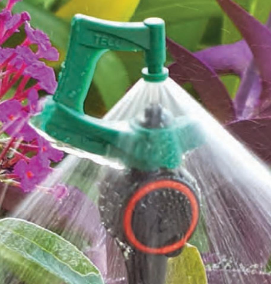 Teco Down Spray 45° PC (model 202254) je špeciálny tlakovo kompenzovaný mikropostrekovač s prietokom 40 l/h s negatívnou trajektóriou -45°.